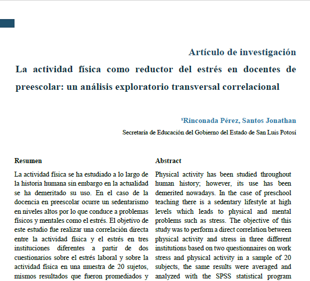 La actividad física como reductor del estrés en docentes de preescolar: un análisis exploratorio transversal correlacional