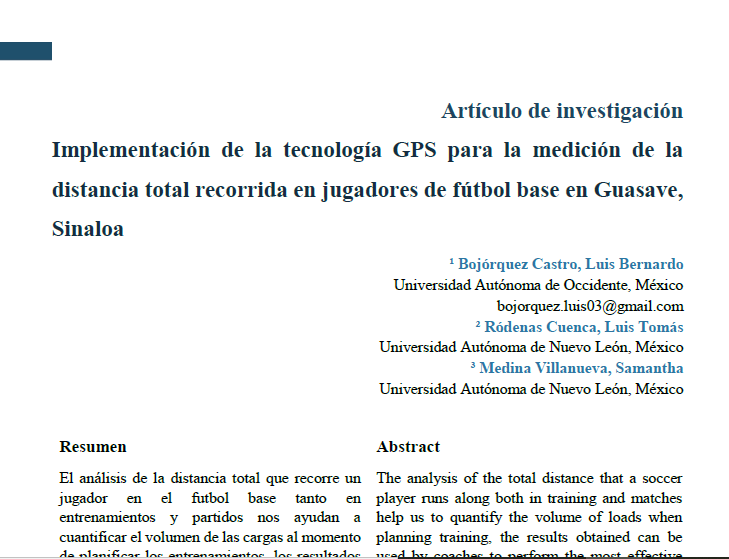 Implementación de la tecnología GPS para la medición de la distancia total recorrida en jugadores de fútbol base en Guasave, Sinaloa